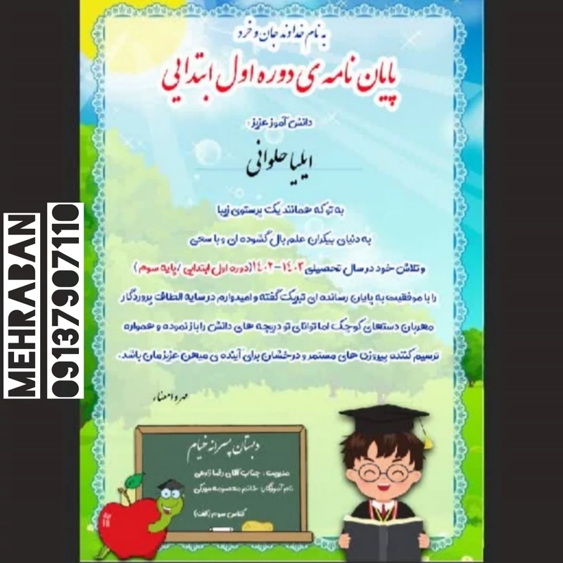 تاج جشن اسم با اسم دانش آموزو اسم معلم و مدرسه یک عدد