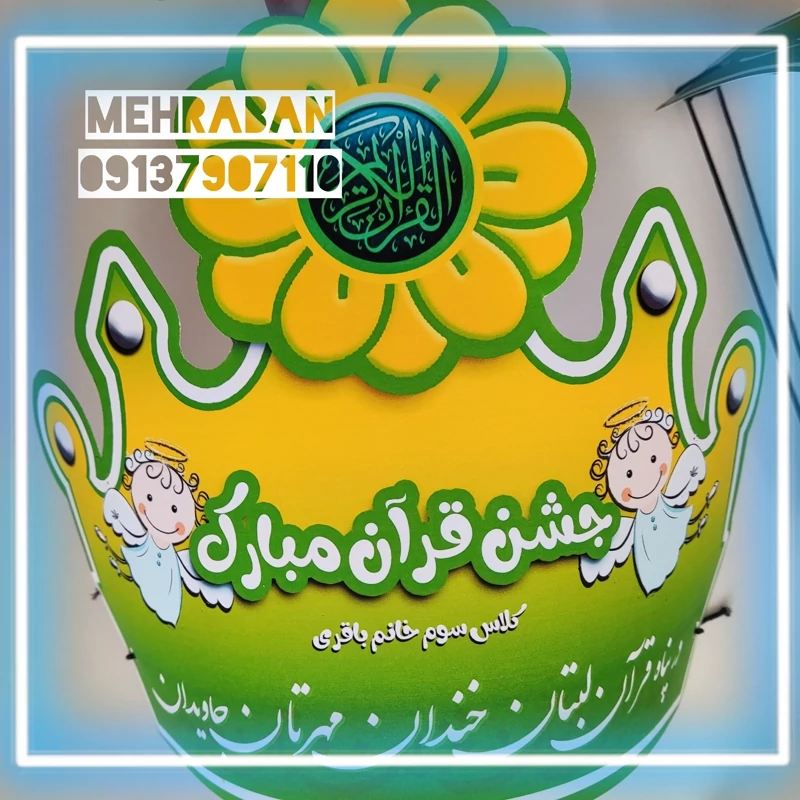 تاج جشن قرآن اسم کلاس و مدرسه قابل چاپ می باشد ،مخصوص کلاس اولی ها و ....بسته های دوازده عددی