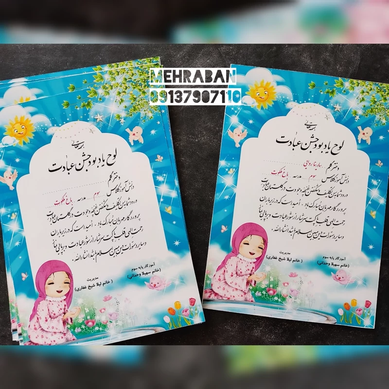 لوح جشن عبادت سال همراه با اسم معلم و مدرسه و دانش آموزان،یک عدد