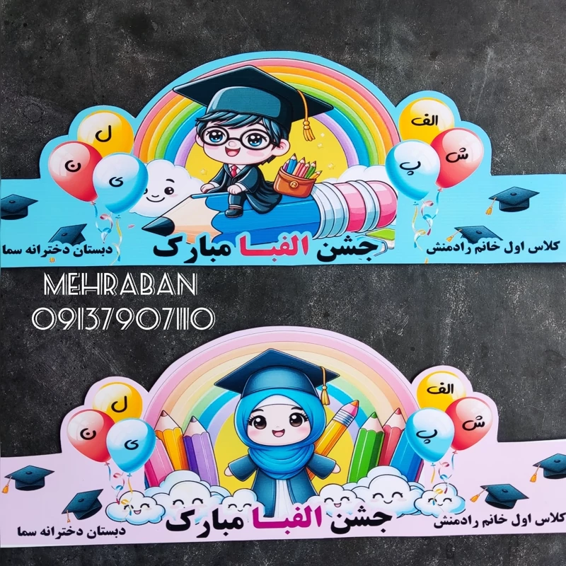 تاج جشن الفبا با اسم کودک مخصوص کلاس اولی ها یک عدد