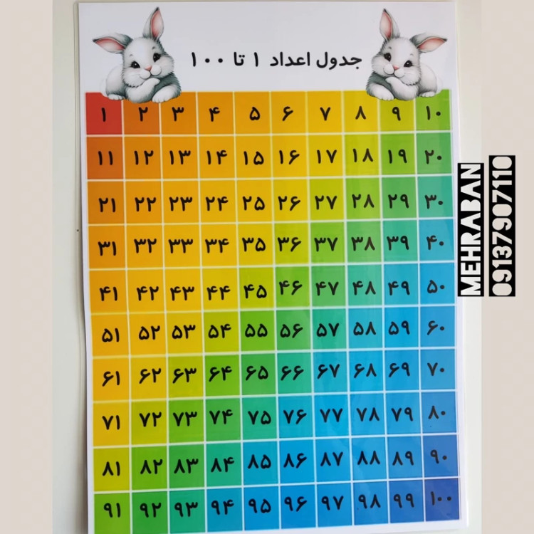 جدول اعداد 1تا100 سایز a3 لمینتی