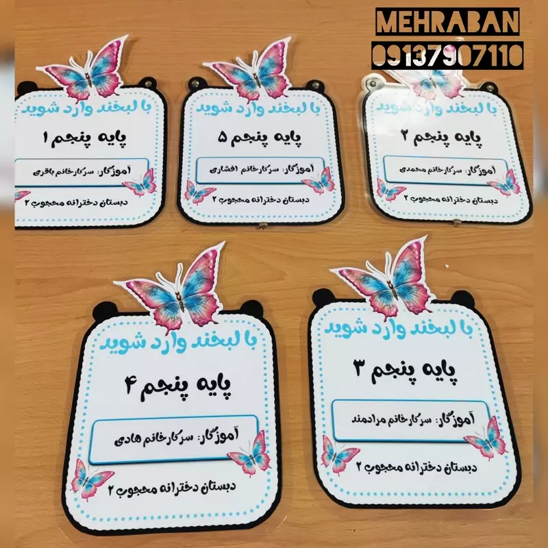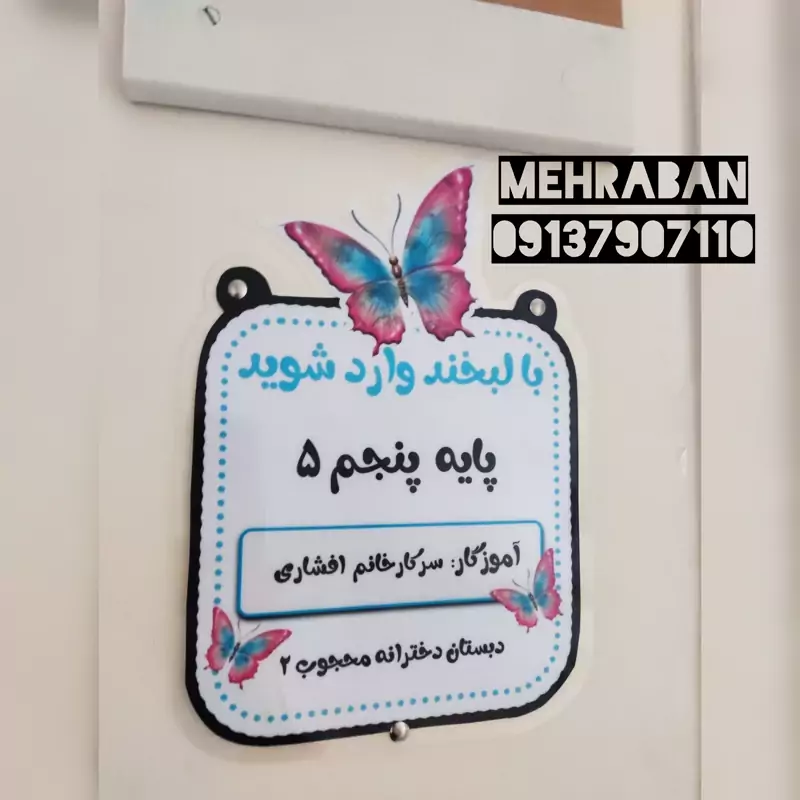 تابلوی ورودی مشخصات کلاس پروانه، لمینت شده و مقاوم مخصوص مدارس