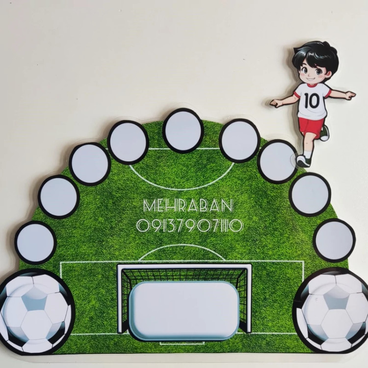لمینت شده ،مگنتی،بازیکن حرکت میکند قطر نیم دایره 40 سانت می باشد هر گونه کپی بردار و استفاده از عکس ها و طرح ها ممنوع می باشد دوست عزیزم شما هم از طریق با سلام میتونید سفارش بدید هم از طریق شماره تماسی که رو عکس ها هست ،ازتون خواهش میکنم نمونه کارههای ما رو برای همکاران نفرستید که براتون طراحی کنند راضی نیستیم 09137907110