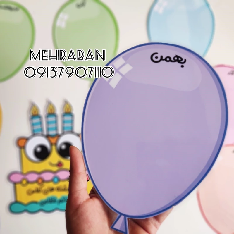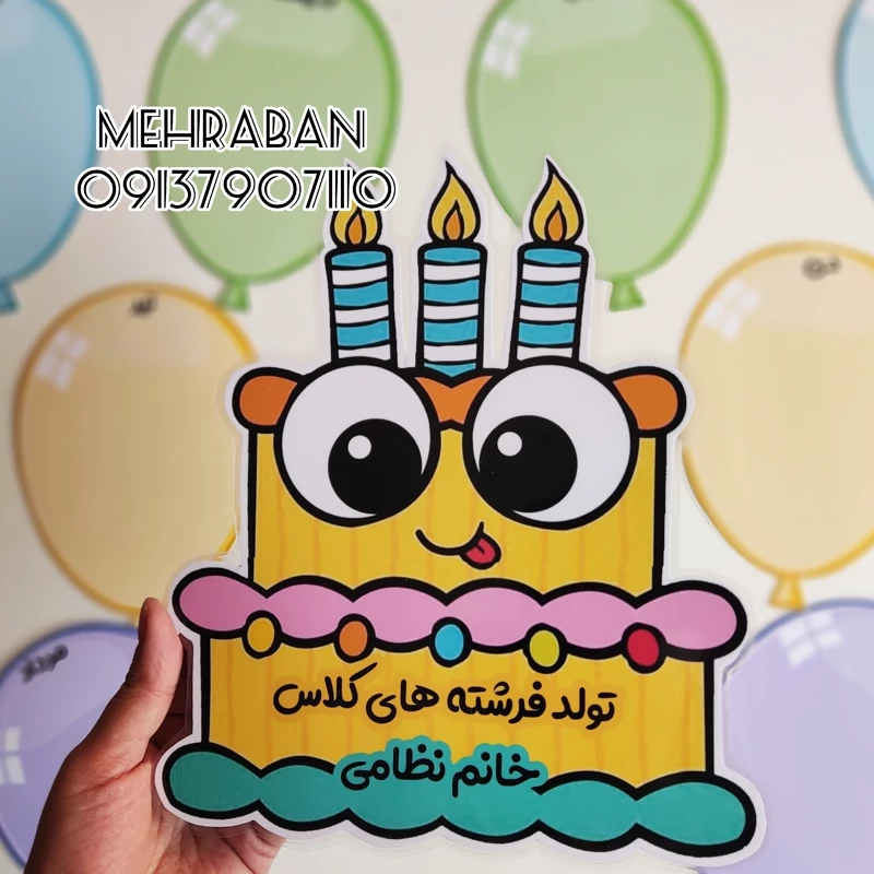 اسم معلم قابل تغییر ،انداز کیک آچهار و بادکنک ها آ5 همگی لمینت شده هستند