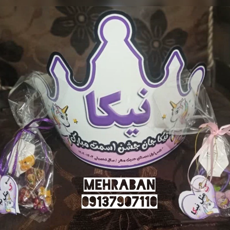 رنگبندی این تاج قابل تغییر می باشد ،رنگ مورد نظر و اسم دانش آموز و مشخصات مدرسه و معلم را در قسمت گفت و گو ارسال کنید