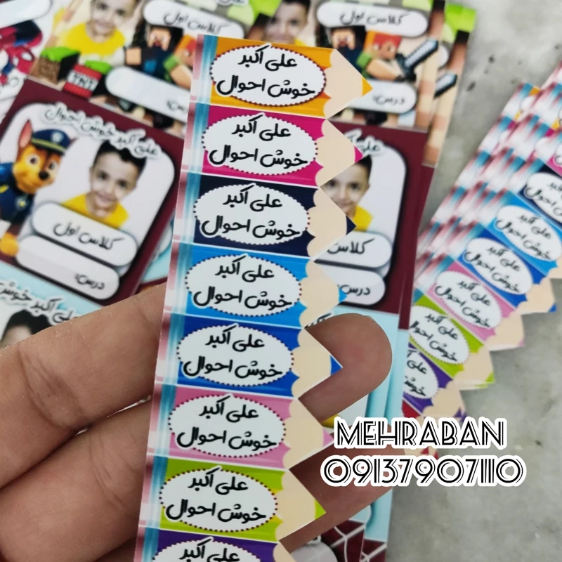 برچسب دانش آموزی،همراه با چاپ اسم عکس 20عدد برچسب کتابی 50عدد مدادی