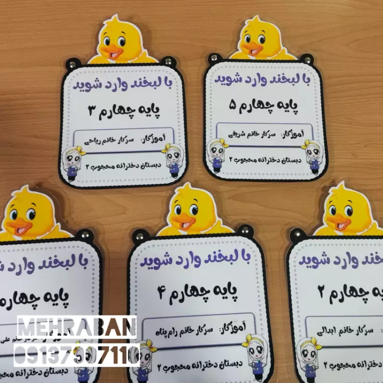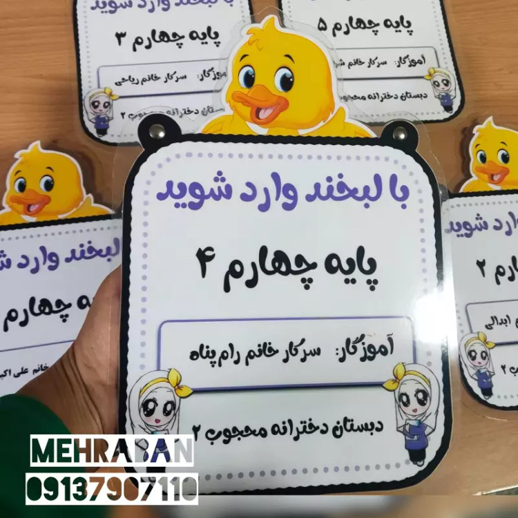 تابلوی ورودی مشخصات کلاس اردک، لمینت شده و مقاوم مخصوص مدارس