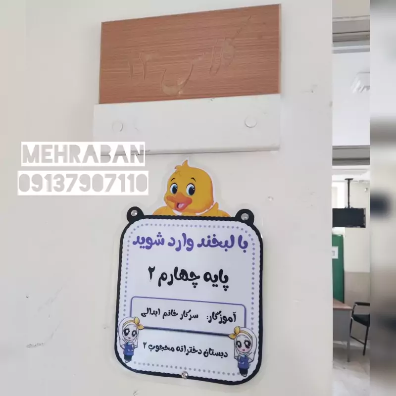 تابلوی ورودی مشخصات کلاس اردک، لمینت شده و مقاوم مخصوص مدارس