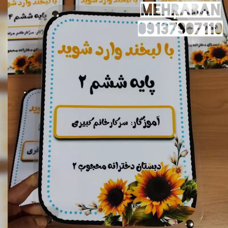 تابلوی ورودی مشخصات کلاس گل، لمینت شده و مقاوم مخصوص مدارس