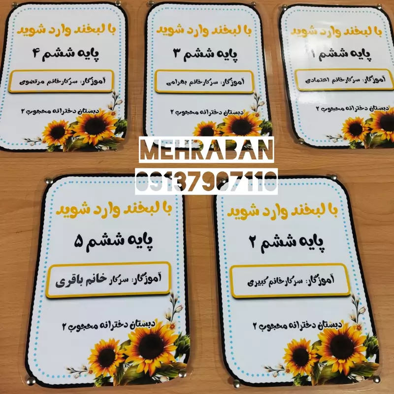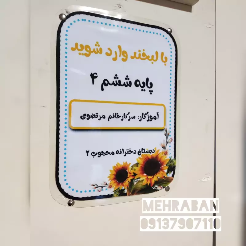 تابلوی ورودی مشخصات کلاس گل، لمینت شده و مقاوم مخصوص مدارس