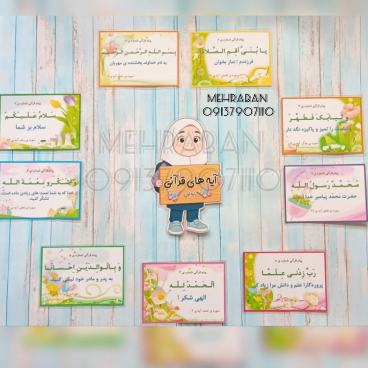 تعداد 9برگ آ5یا آ4به انتخاب خودتون براتون به صورت لمینت شده ارسال میشه ،شما هر تمه رو با سلیقه خودتون روی دیوار یا برد کلاس میچسبونید