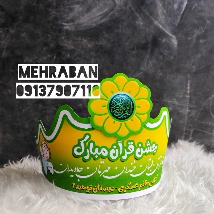 تاج جشن قرآن کوتاه، اسم کلاس و مدرسه قابل چاپ می باشد ،مخصوص کلاس اولی ها یک عدد